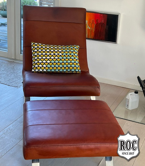 Meget falmet / solbleget læderstol får farve igen med ROC Narvsværte.